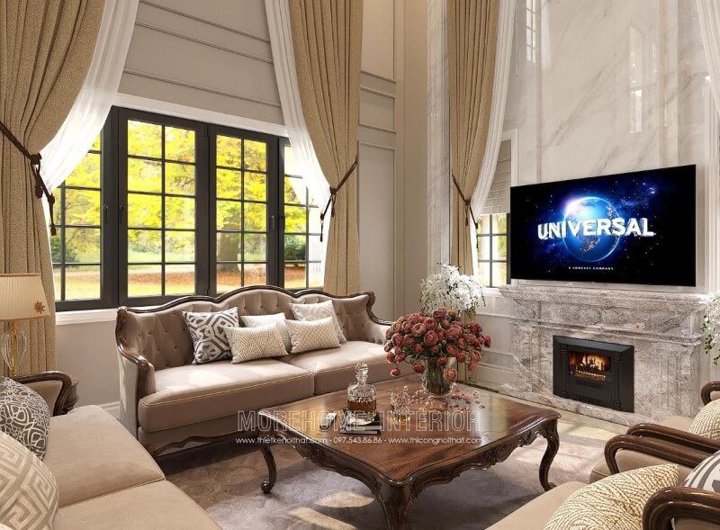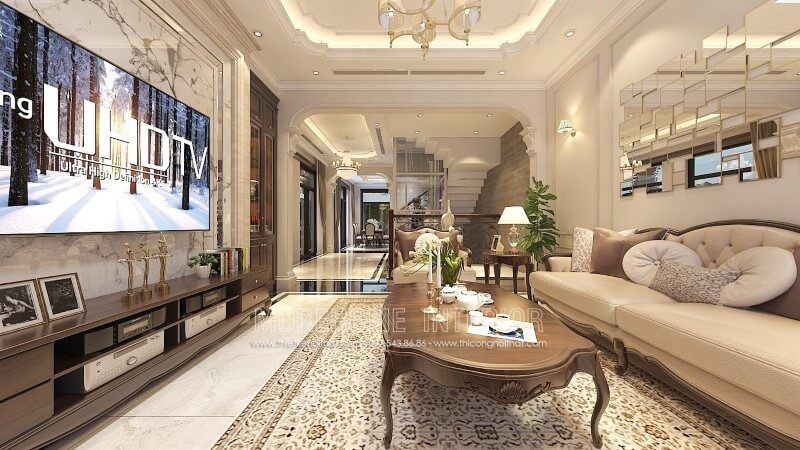 Mẫu thiết kế nội thất phòng khách hiện đại đẹp tại biệt thự Đông Anh Hà Nội