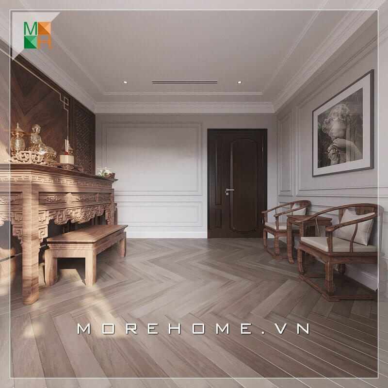 Tranh kính treo phòng thờ của biệt thự, nhà phố mang màu sắc huyền bí, linh thiêng.