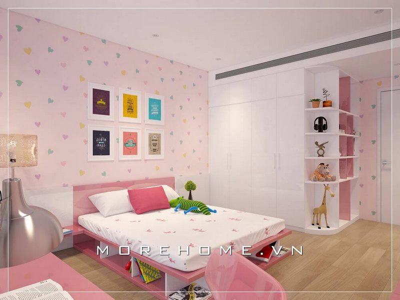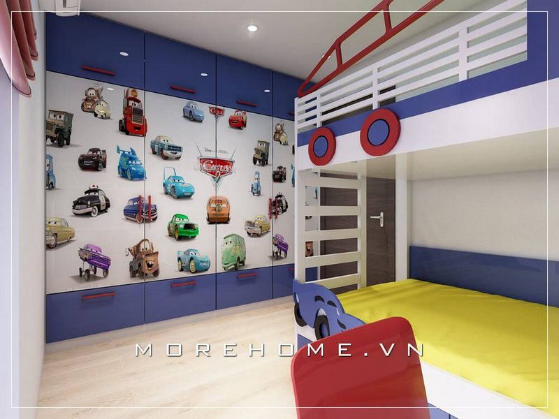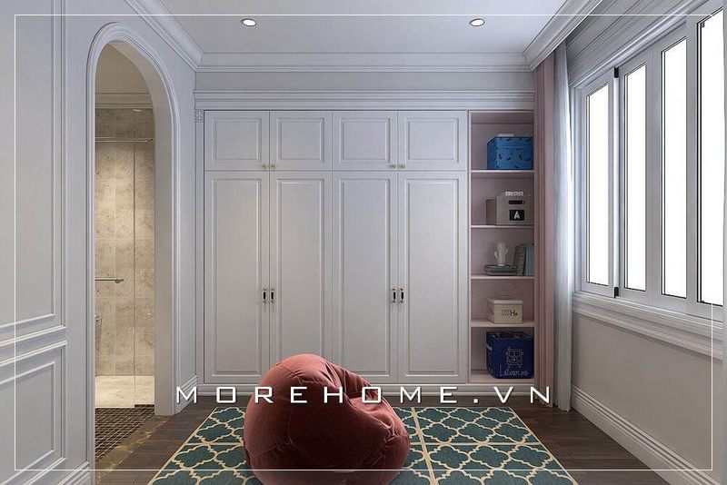 Gợi ý thiết kế nội thất phòng ngủ trẻ em đẹp và tiện nghi với bộ tủ quần áo 4 cánh hiện đại âm tường ấn tượng