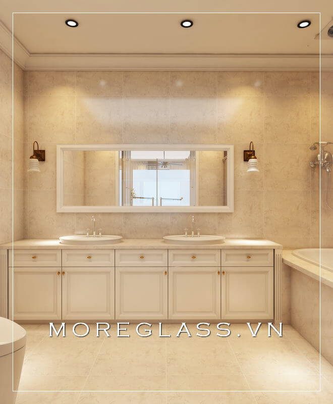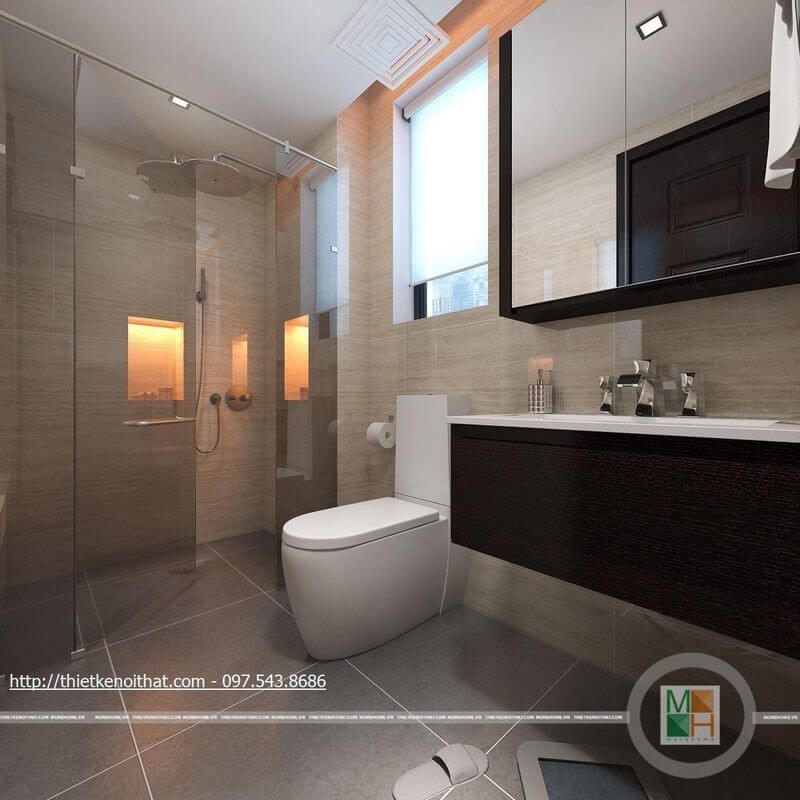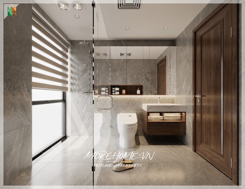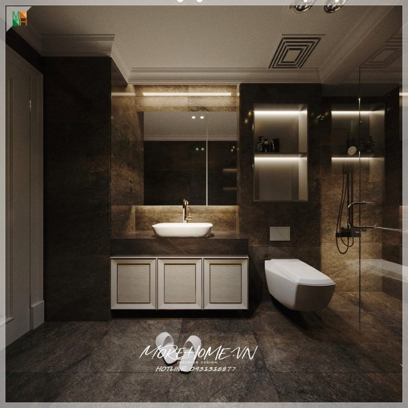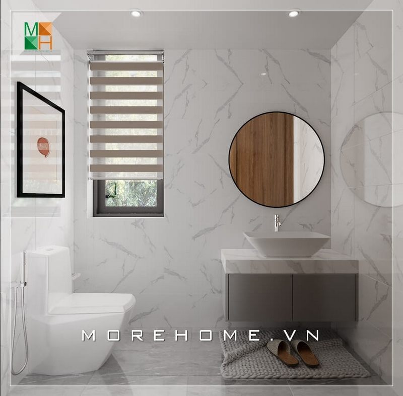 Được phân bố hiệu quả lavabo và bàn cầu phù hợp với không gian phòng tắm của gia chủ để không bị quá trật hẹp tạo cảm giác khó chịu khi sử dụng