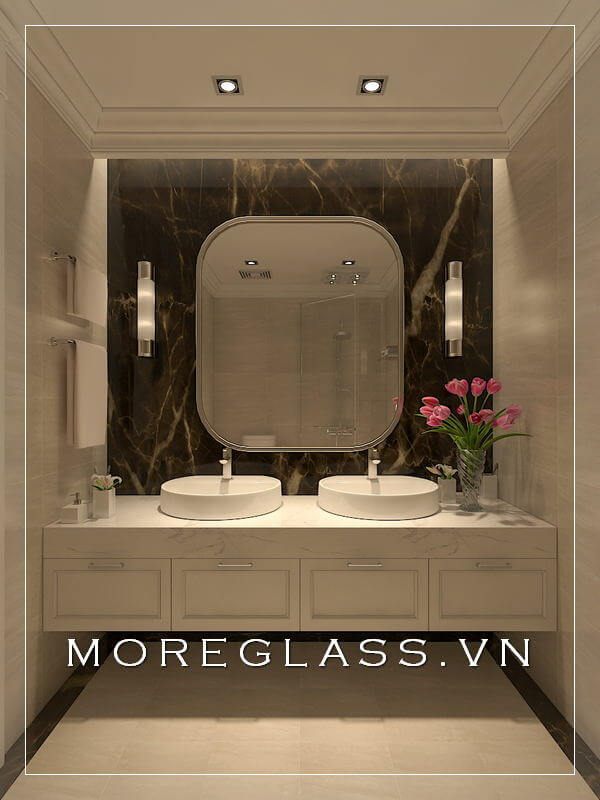 Mẫu tủ lavabo gỗ công nghiệp kết hợp đá ốp mặt lavabo màu trắng cao cấp