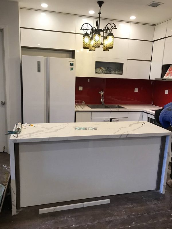 Khách hàng hiện nay đang ưa chuộng mặt bếp ốp đá nhân tạo vân mây làm lựa chọn của họ.