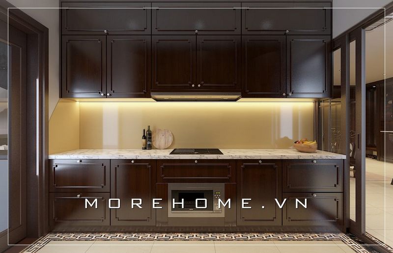 Thiết kế nội thất phòng bếp biệt thự hiện đại, đơn giản và thuận tiện cho người nội trợ.